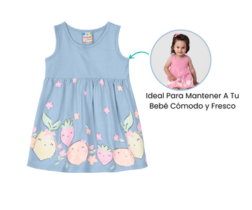 Su diseño incluye detalles que aportan un toque alegre y divertido. Además, su corte cómodo permite libertad de movimiento, ideal para que la bebé juegue y explore con total facilidad. Perfecto para los días de verano, combina estilo y comodidad en una sola pieza.