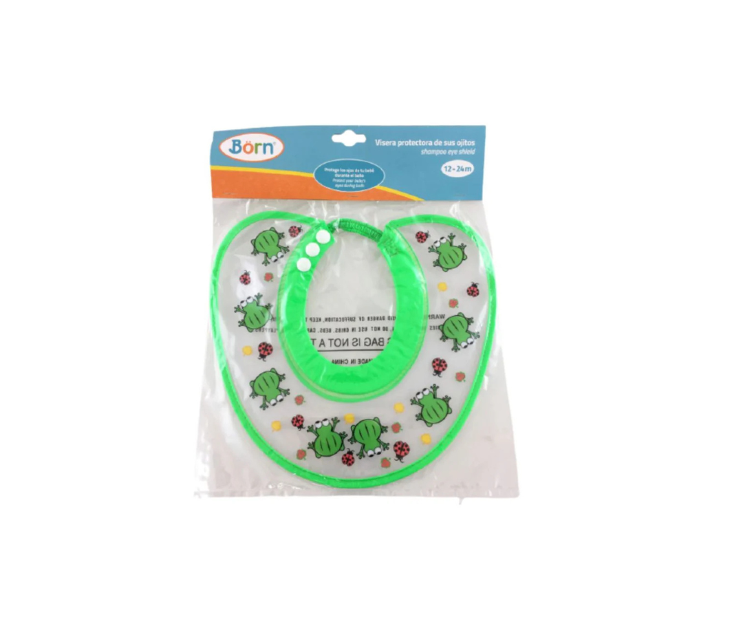 La visera protectora Born está diseñada especialmente para proteger los ojitos y la carita de tu bebé al momento del baño. Su forma anatómica evita que el agua y el shampoo caigan sobre los ojos, haciendo que la experiencia sea más tranquila y agradable tanto para los padres como para los pequeños.
