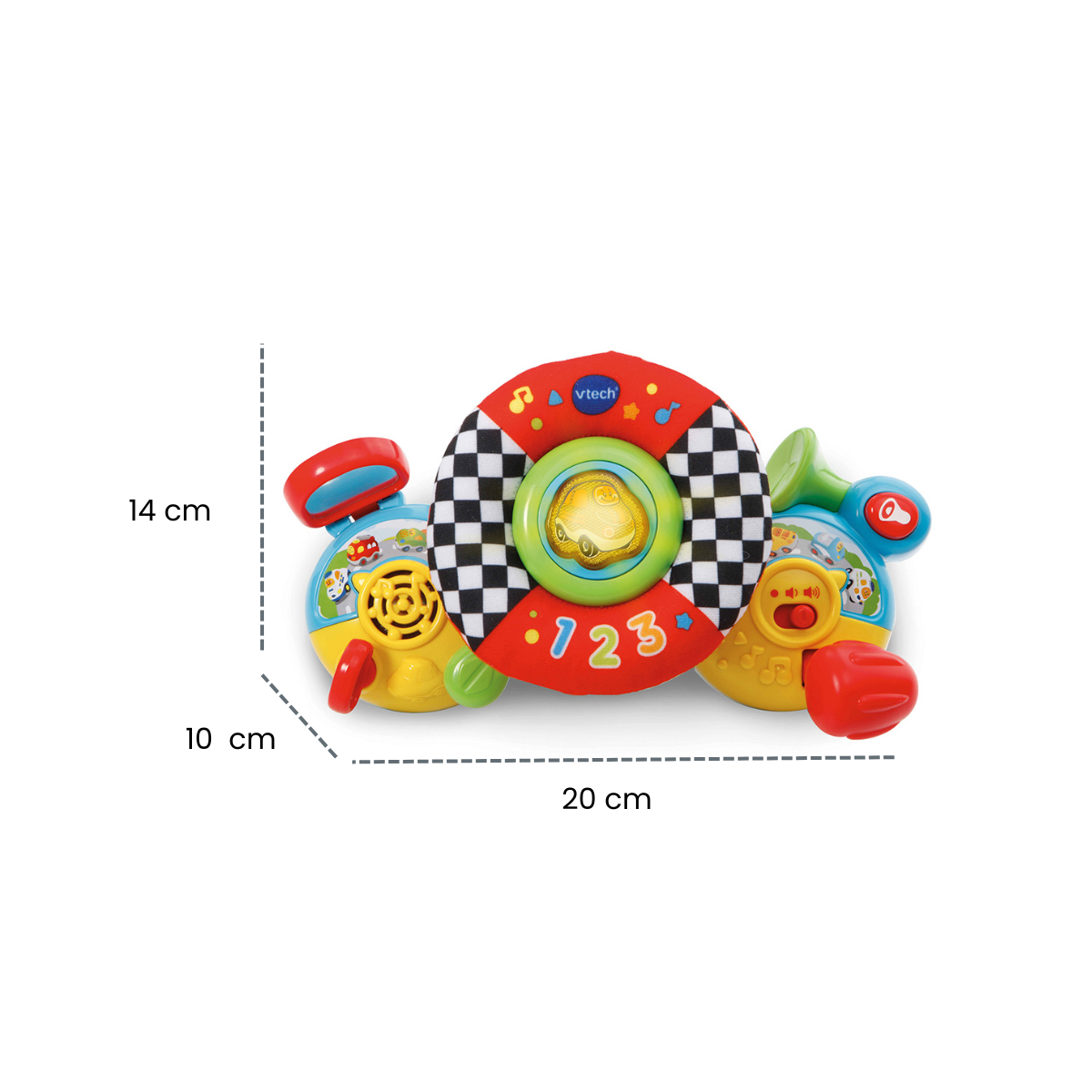 Este volante enseña a los pequeños conceptos clave de forma entretenida, incluyendo nuevas palabras, antónimos y normas de seguridad vial. Mientras giran y presionan botones, escuchan más de 60 canciones, melodías y frases que estimulan su desarrollo del lenguaje y fortalecen su comprensión del entorno. Además, su botón luminoso de coche aporta un toque de emoción que motiva a los niños a seguir explorando.